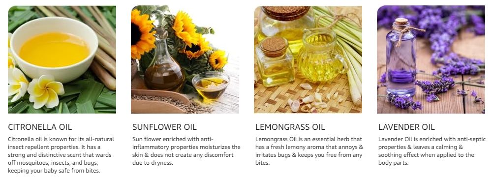 - The repellants also has the goodness of essential oils such as Lavender Oil which has proven health benefits of such as its ability to relieve pain, disinfect the skin & prevent skin irritation & rashes.