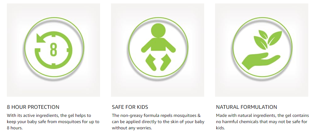 Hi, I’m Mamaearth Natural Mosquito Repellent Gel. I am a 100% natural and safe insect repellent gel. I am made from natural ingredients like Citronella Oil, Lemongrass Oil, and Peppermint Oil, which are proven to repel almost all kinds of insects away. The MadeSafe Certification and All-natural ingredients prove that I am the safest and the best insect repellent for your baby. I effectively protect your family from mosquito bites while moisturizing the skin. Dermatologically tested, this gel has a family-safe formula as it does not contain any undesirable ingredients like DEET, SLES, PEG, Insecticides, Mineral Oil, or Parabens.
