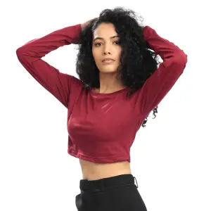 Product details of Maroon Full Sleeve Crop T-Shirt For Women