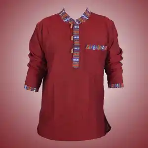 Product details of Maroon Kurta Bhutani Border Shirts For Men - Multisize | Fashion | Kurtha For Men | Shirts For Men | Men'S Wear
